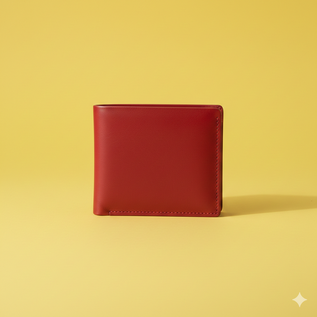 “Minimalist ecommerce product image of a red leather wallet, yellow background, soft studio lighting, top-down angle, crisp details, shadows below the product, 3000×3000, no text.” Create Image