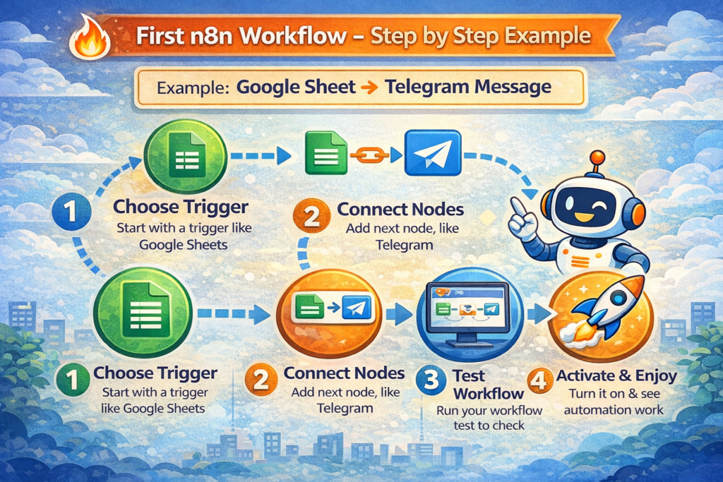 Your First n8n Workflow – Step-by-Step Example (Easy for Beginners)