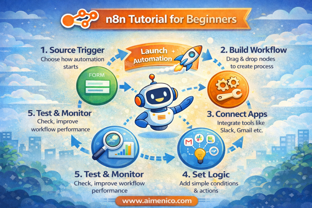 In this n8n tutorial for beginners, we will understand step by step what n8n is, how it works, and how beginners can use it. The good news is that even if you are non-technical or don’t know coding, you can still create powerful workflows using n8n. The goal of this tutorial is not to confuse you, but to give you confidence – so that you can take your first strong step into the world of automation.
